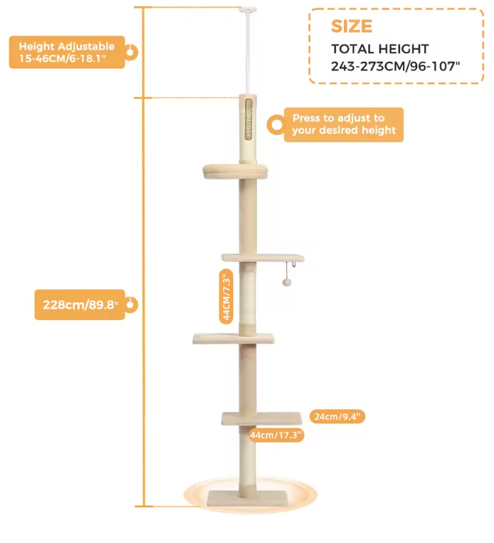 Comment concilier le bien-ĂȘtre de votre chat avec vos contraintes d'espace ? Notre arbre Ă chat Ă fixation plafond offre une solution ingĂ©nieuse. GrĂące Ă son systĂšme de tension floor-to-ceiling, il se dĂ©ploie verticalement sans nĂ©cessiter le moindre perçage. Sa base large assure une stabilitĂ© exceptionnelle, mĂȘme lorsque plusieurs chats dĂ©cident de l'escalader simultanĂ©ment.